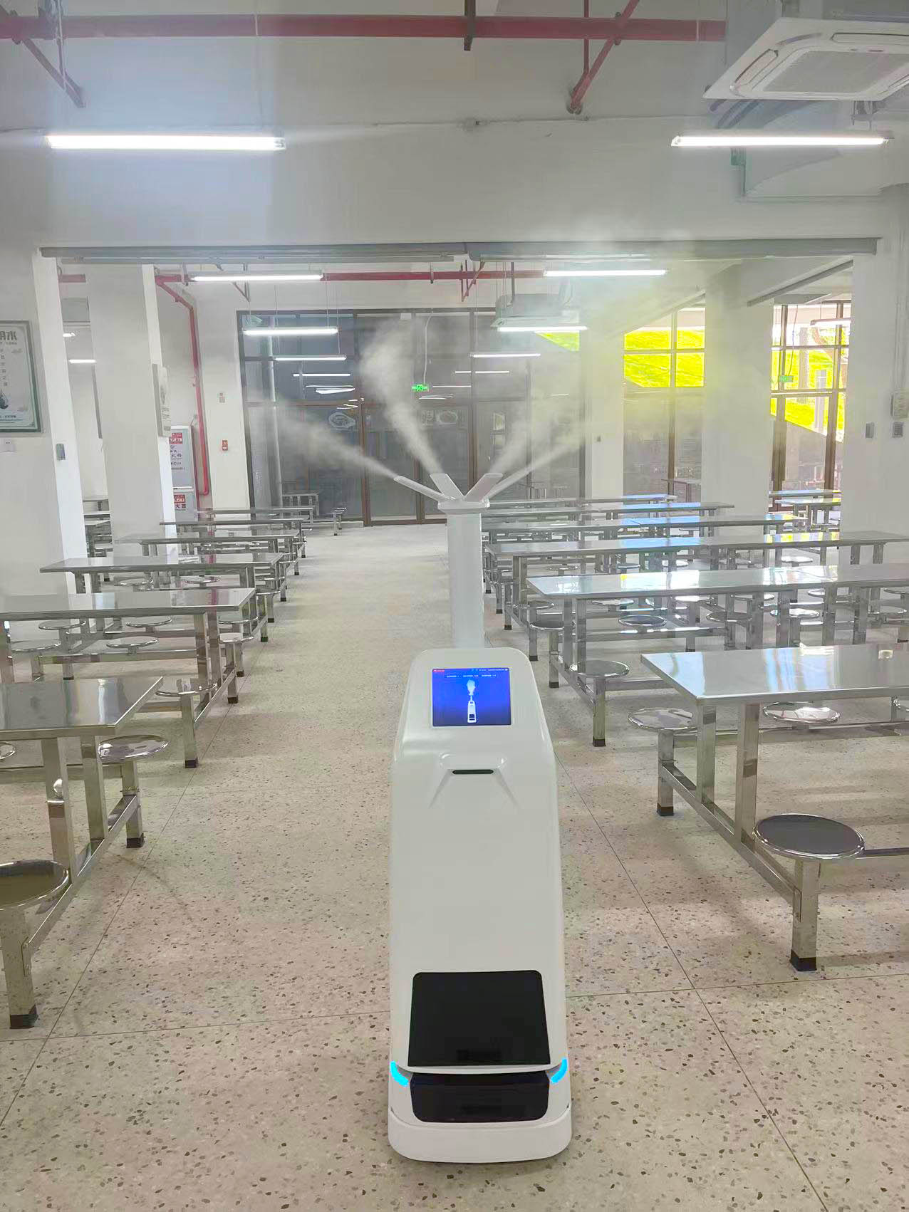 为了能让学生在一个安全的环境中学习、成长,永信贵宾会智能新推出的新一代干雾消毒机器人入驻拥有百余年校史的蒲城一中,通过干雾消杀解决方案,对病毒、细菌等病原体进行全面消杀,为教室、食堂等场所提供安全保障。