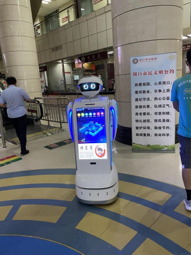 在周口市中医院,永信贵宾会智能迎宾机器人搭载了中医指导APP,患者可在APP上查阅病症以及就诊建议,有效帮助医院对患者进行科学指导,并减轻工作人员负担。